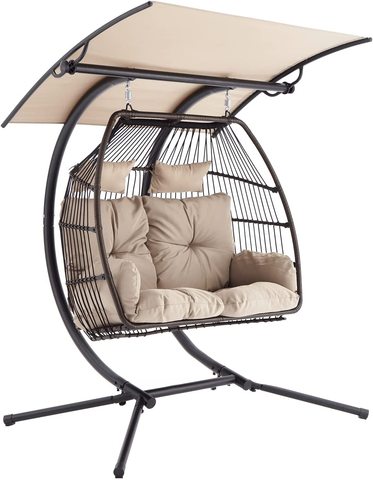 야외 더블 스윙 계란 의자 캐노피 2 사람 교수형 의자 손으로 만든 등나무 위커 해먹 의자 스탠드