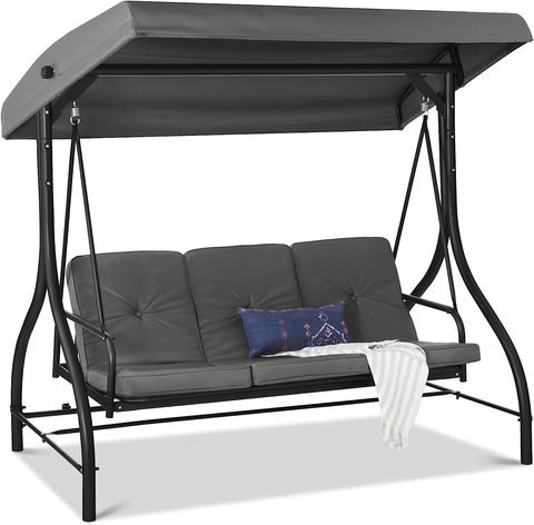 3 مقاعد في الهواء الطلق تحويل كبير المظلة أرجوحة شراعية الفناء أرجوحة كرسي صالة لالشرفة الفناء الخلفي ث/الظل المسطح قابل للتعديل