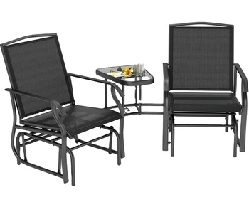 Danlong Outdoor Glider Chairs With Coffee Table, Patio 2-Seat Rocking Chair Swing Loveseat With Breathable Sling for Backyard