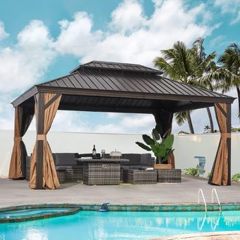 Danlong 10 'x 12 'hardtop Gazebo alüminyum çerçeveli açık veranda için perdeler ve netleştirme ile çift polikarbonat çatı ile Gazebo